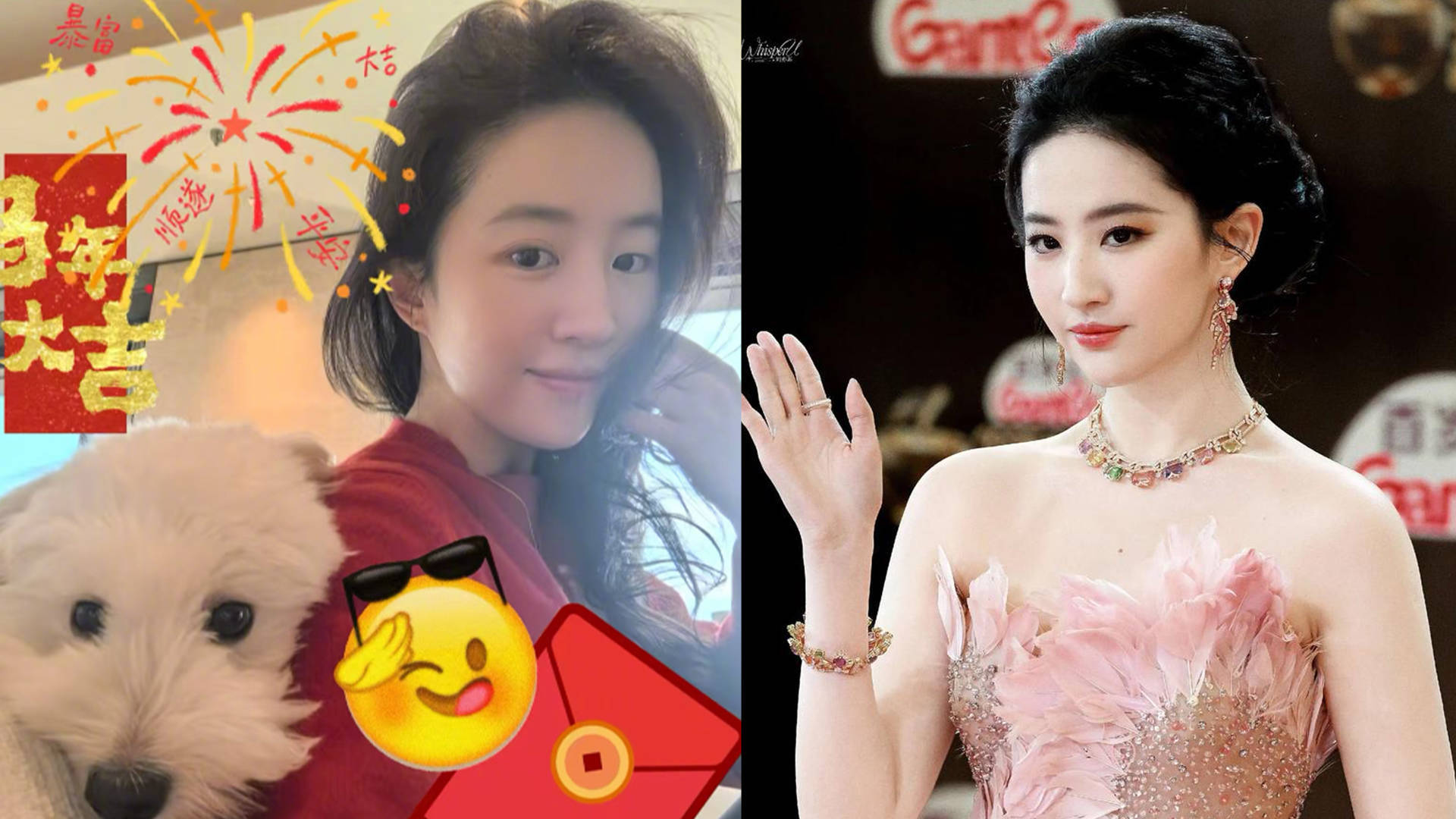 刘亦菲素颜抱狗拜年!夹子音训狗萌化全网,收养流浪犬故事太暖